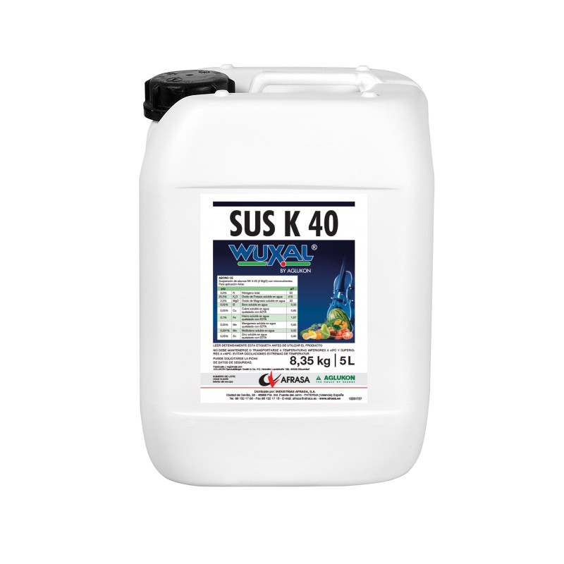 WUXAL SUS K 40, es el abono foliar con una formulación rica en potasio de Afrasa.